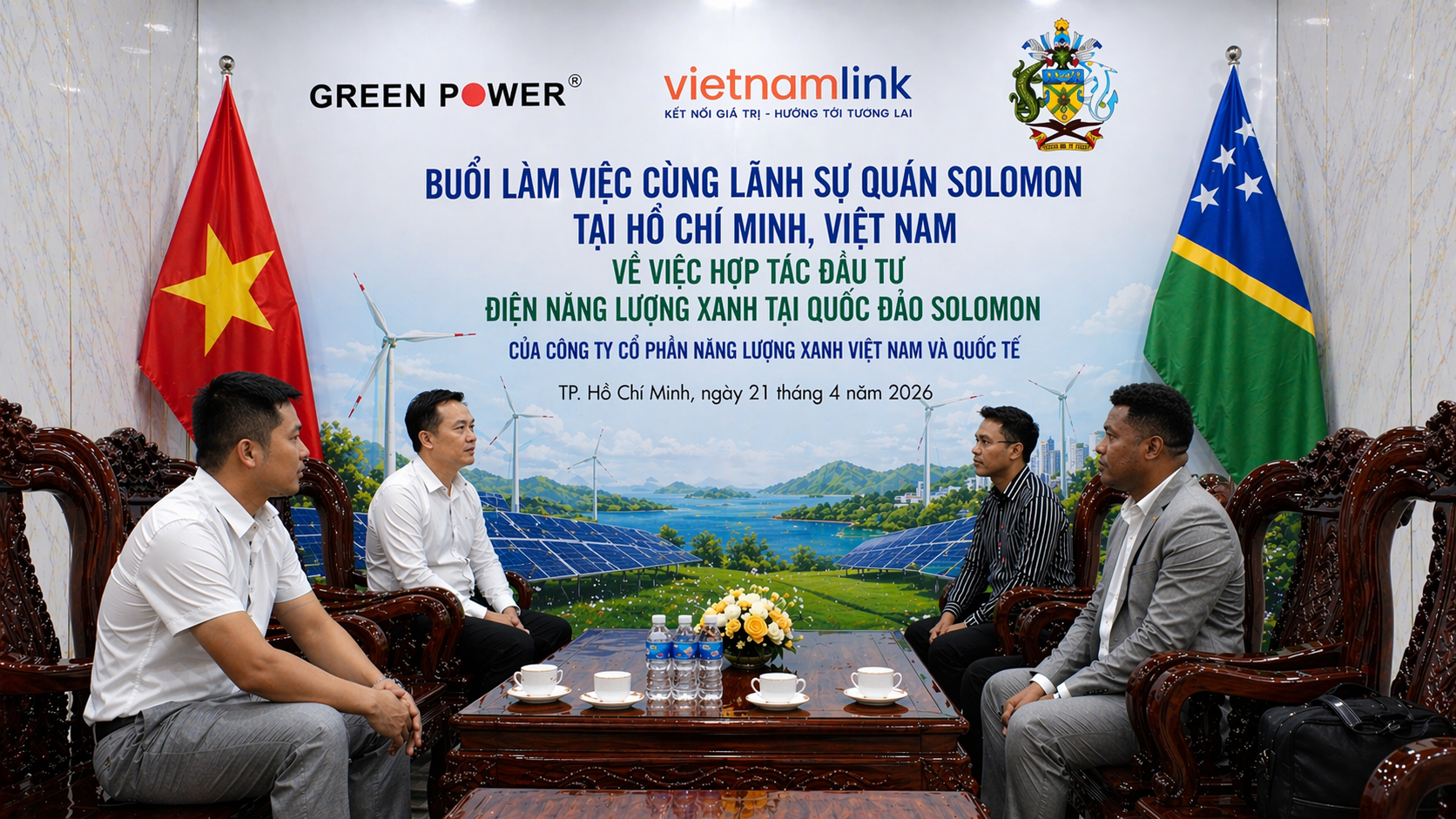 buổi tiếp và làm việc giữa Lãnh sự quán Solomon và Công ty Cổ phần Năng lượng Xanh Việt Nam và Quốc tế (Green Power JSC) đã diễn ra trong không khí trang trọng và hợp tác.